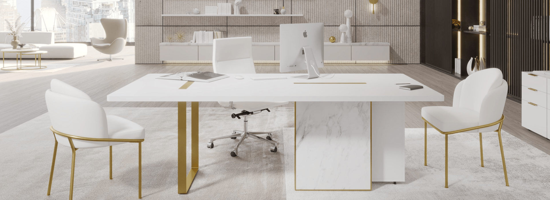A fresh and avant-garde take on office furniture, the Augustus Desk elevates any space. The subtle brass metal detailing enhances the luxurious stone base. While the smooth top available in walnut,...